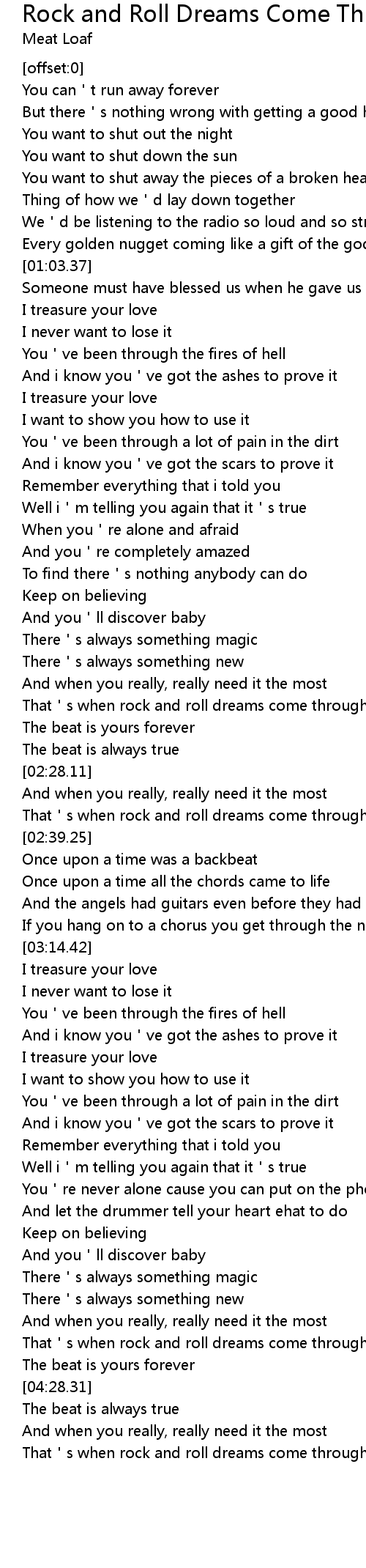 | [02:33.60] | That s when rock and roll dreams come through... for you... |