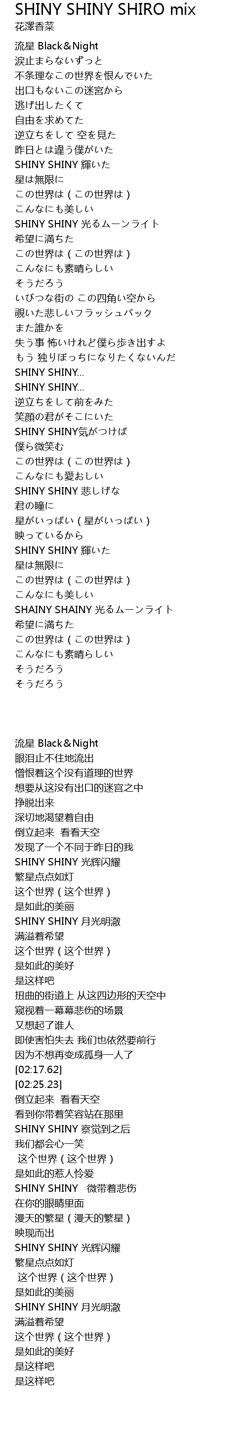 | [03:33.38] | SHAINY SHAINY 光るムーンライト |