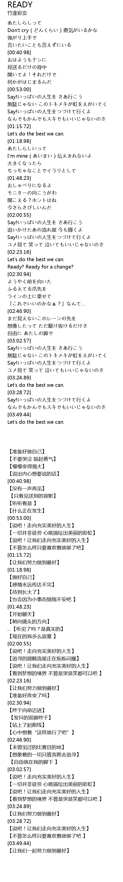 | [03:38.68] | Say!いっぱいの人生をつづけて行くよ |