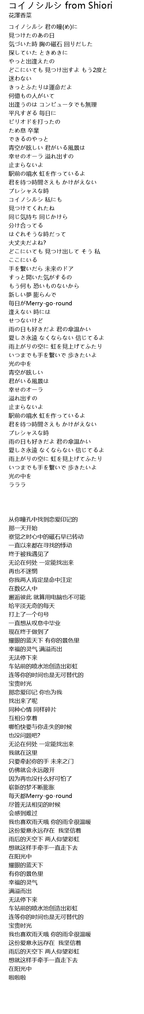 | Song | コイノシルシ from Shiori |