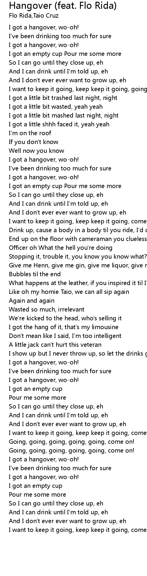 | [00:00.00] | I got a hangover, wo-oh! |
