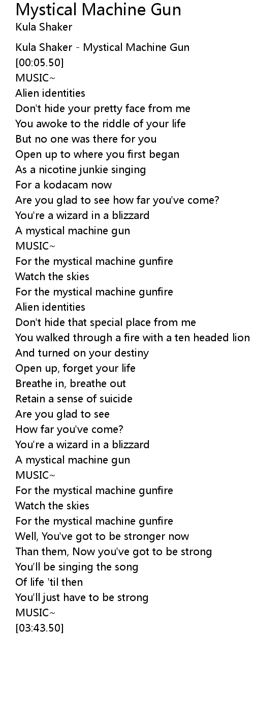 For the mystical machine gunfire |