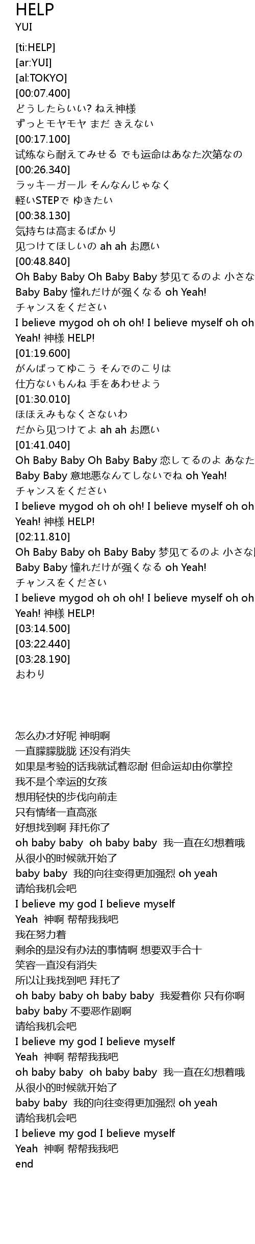 | [03:09.410] | Yeah! 神様 HELP! |