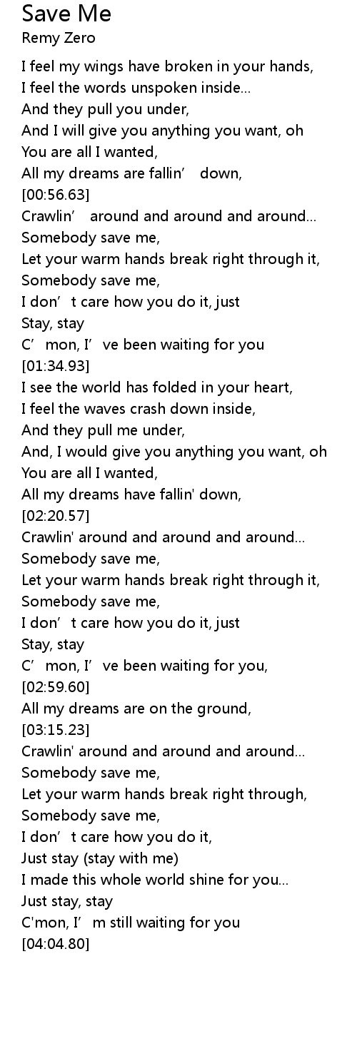 | [03:59.16] | C'mon, I’m still waiting for you |