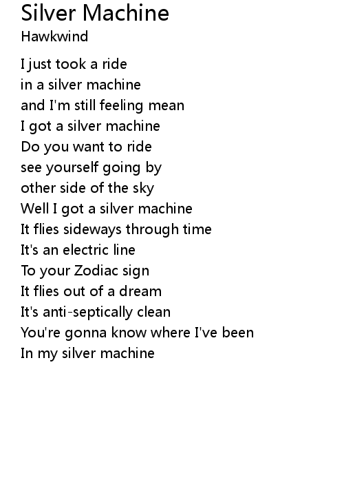 | Well I got a silver machine | |