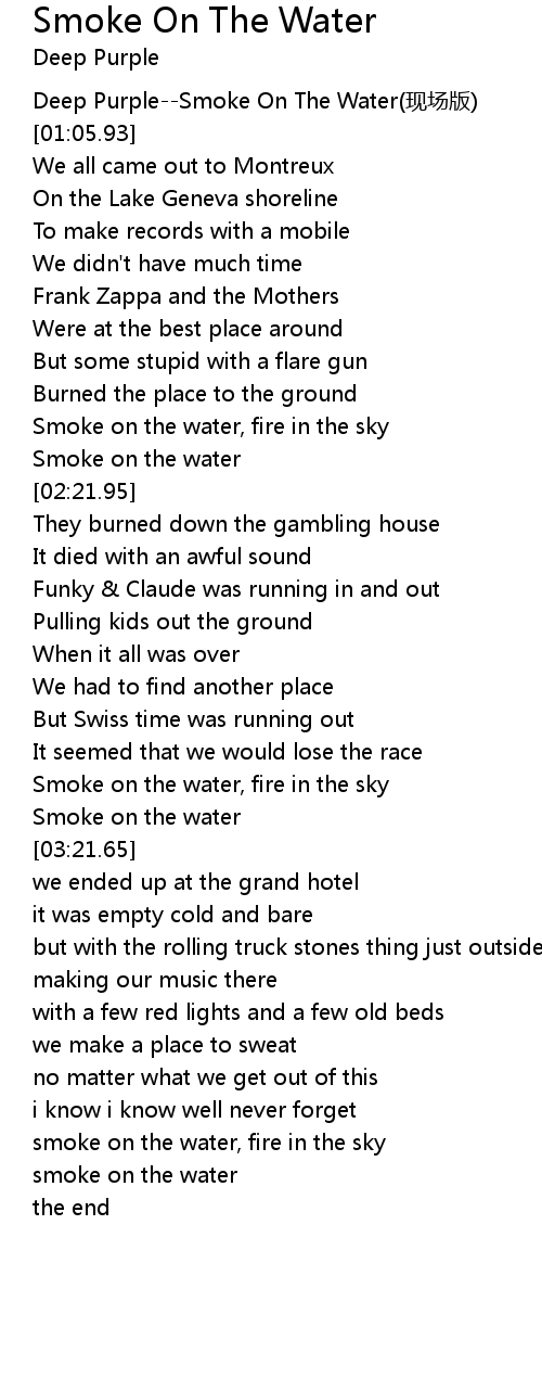 | [02:05.81] | Smoke on the water, fire in the sky |