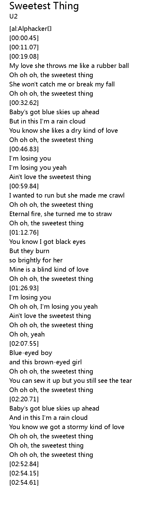 | [02:31.61] | Oh oh oh, the sweetest thing |
