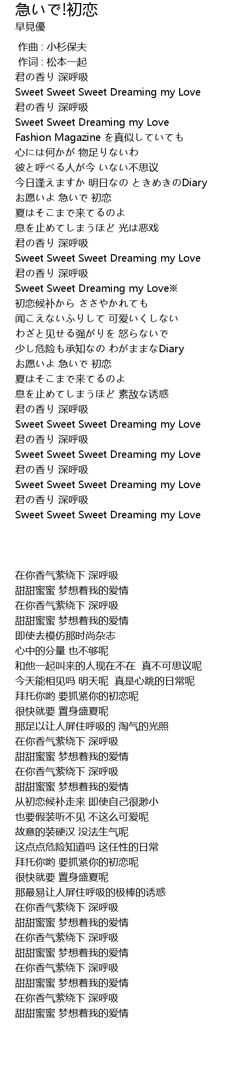 | [01:01.44] | お愿いよ 急いで 初恋 |