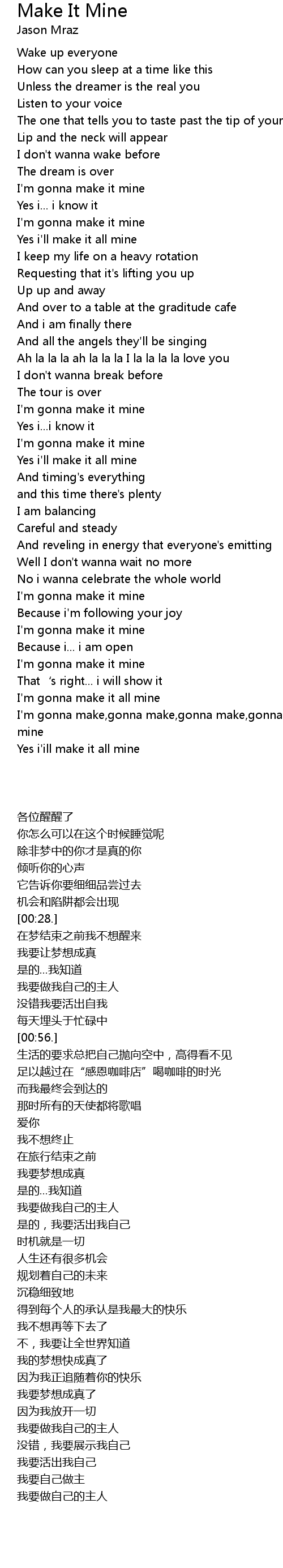 | [02:50.] | I' m gonna make, gonna make, gonna make, gonna make, make it, make it mine, all mine |