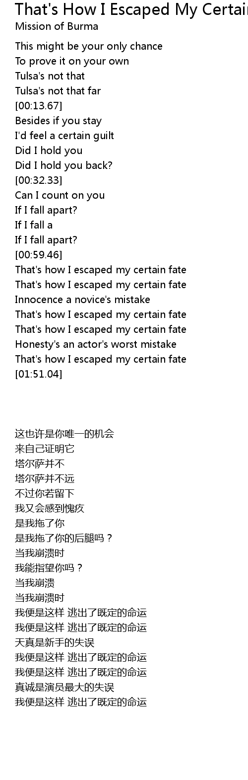 That's how I escaped my certain fate |