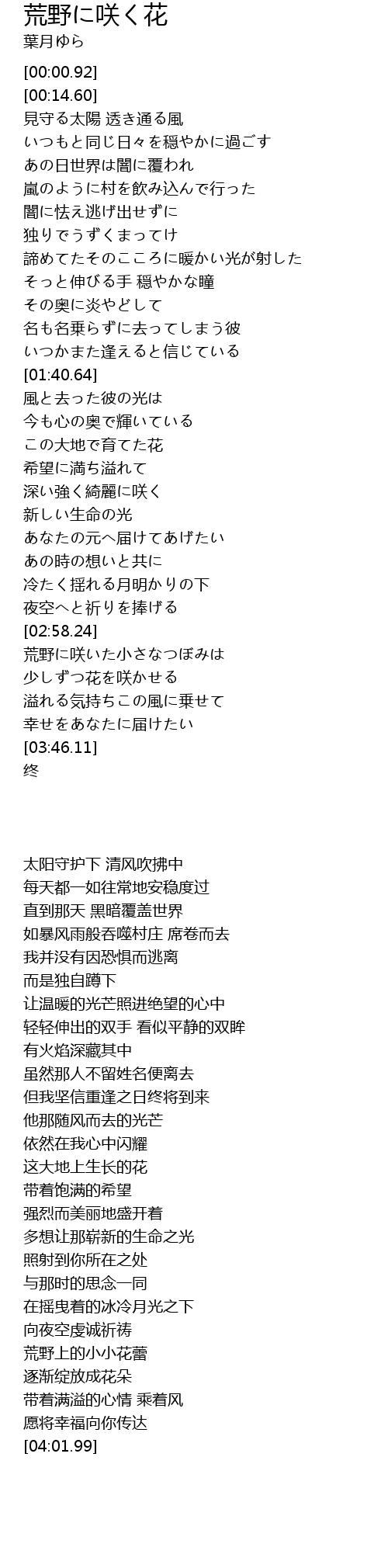 | [03:15.29] | 荒野に咲いた小さなつぼみは |