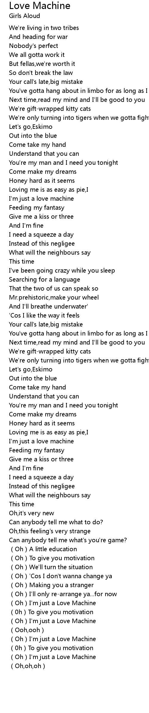 | [01:02.123] | I'm just a love machine |