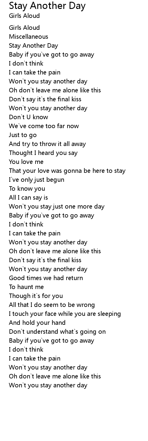 Won`t you stay another day |