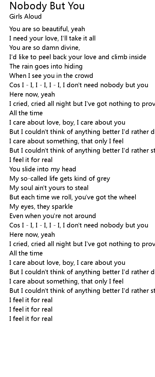 Cos I - I, I - I, I - I, I don't need nobody but you |