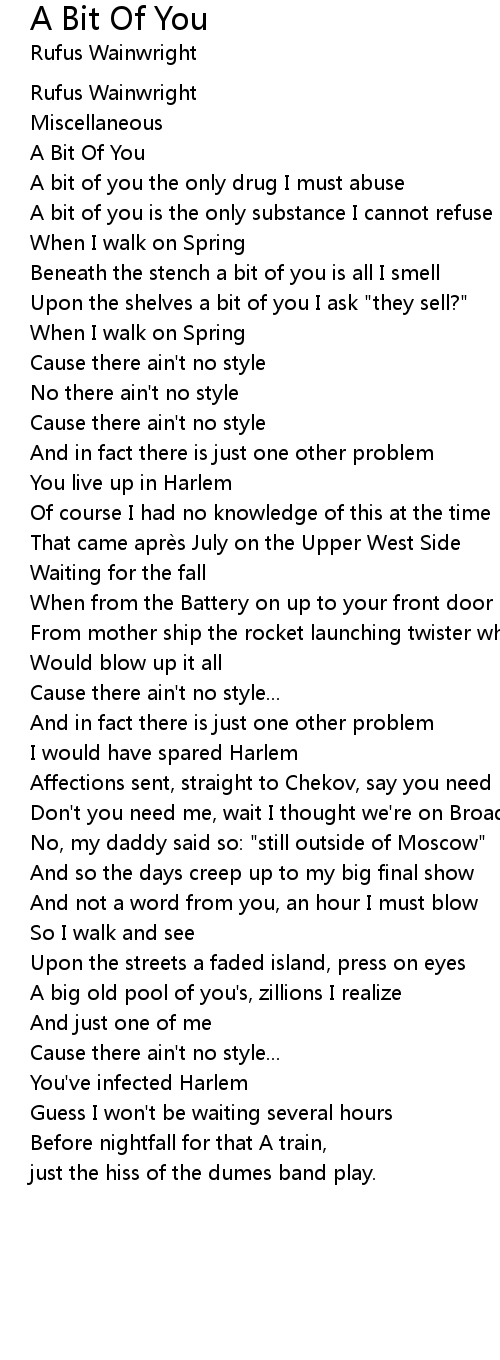 | A bit of you the only drug I must abuse | |
