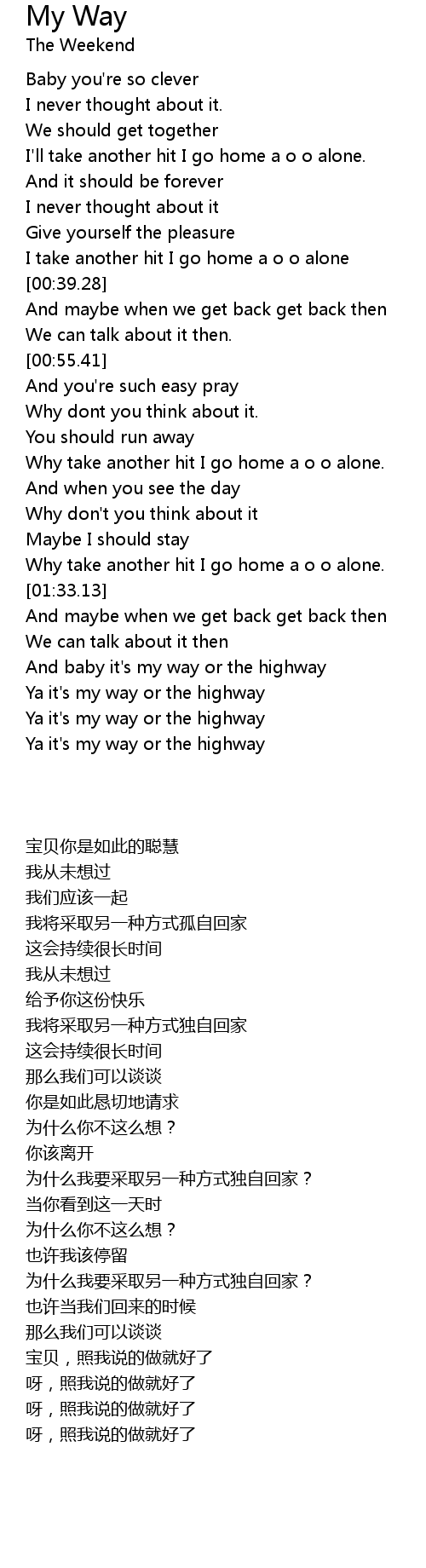 And baby it's my way or the highway |