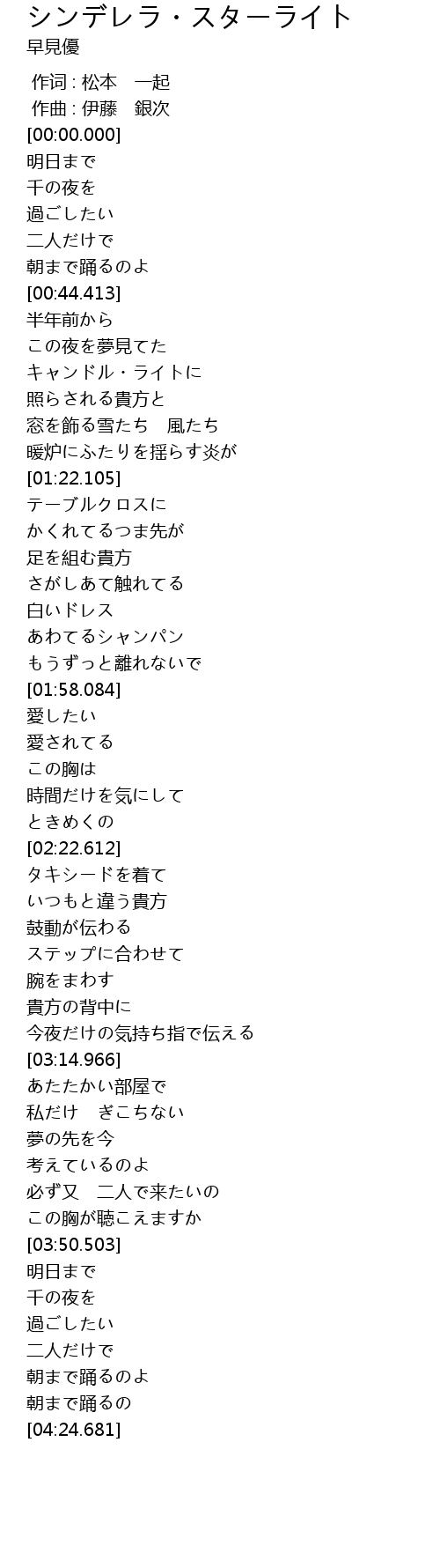 シンデレラ・スターライト  Lyrics