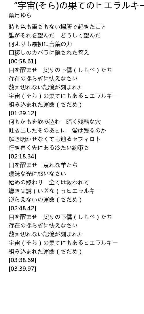 | [03:28.37] | 宇宙(そら)の果てにもあるヒエラルキー |
