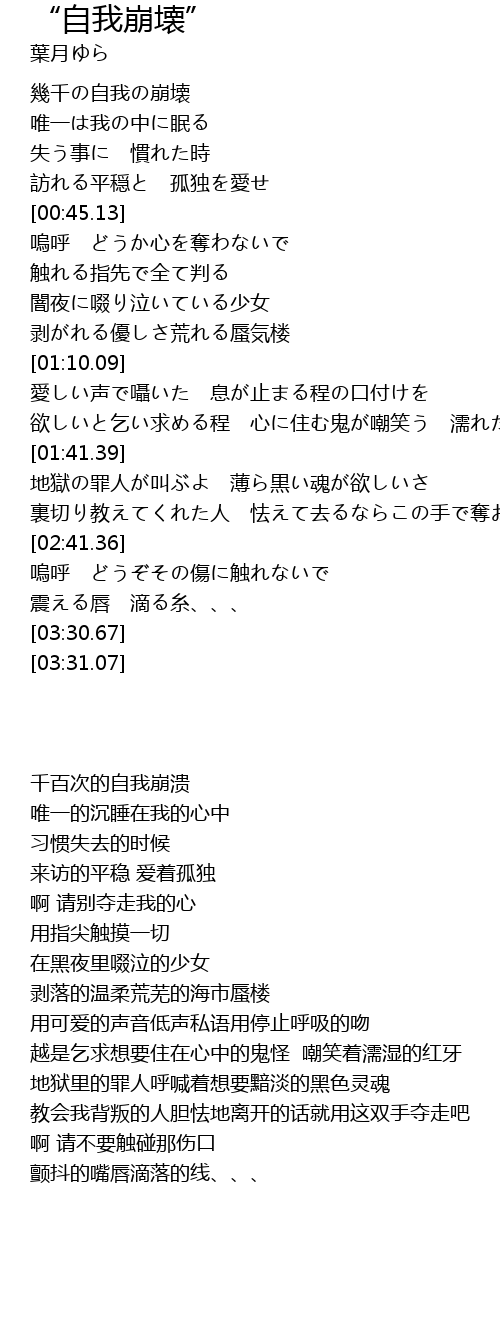 | [00:45.60] | 嗚呼 どうか心を奪わないで |
