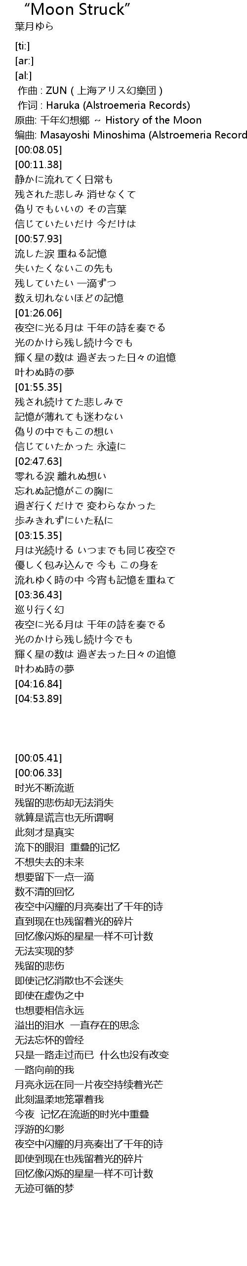 | [00:05.41] | 原曲: 千年幻想郷 ~ History of the Moon |