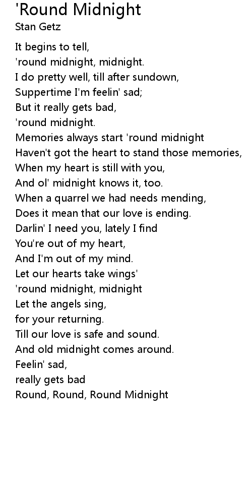 'round midnight, midnight. |