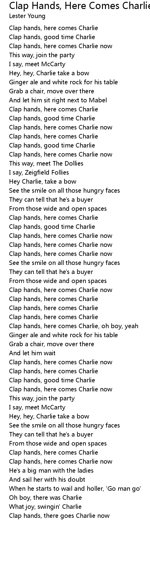 Clap hands, here comes Charlie, oh boy, yeah |
