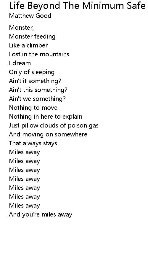 | Song | Life Beyond The Minimum Safe Distance |