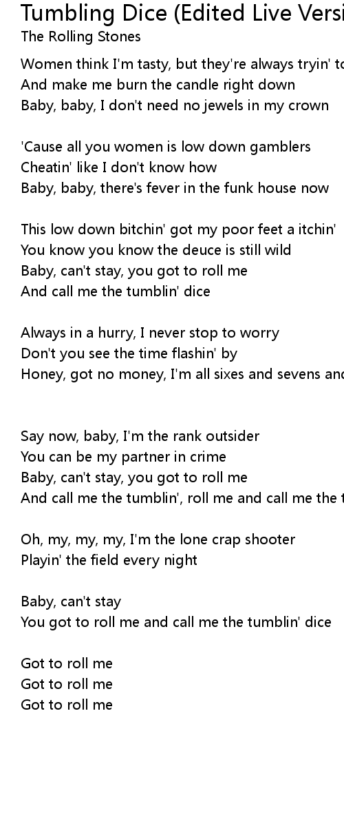 You got to roll me and call me the tumblin' dice