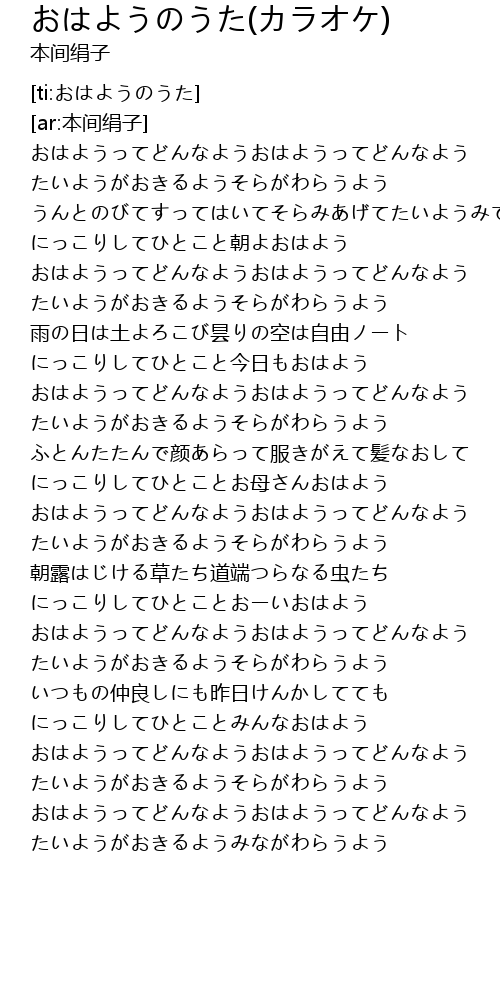 | [00:08.457] | おはようってどんなようおはようってどんなよう |