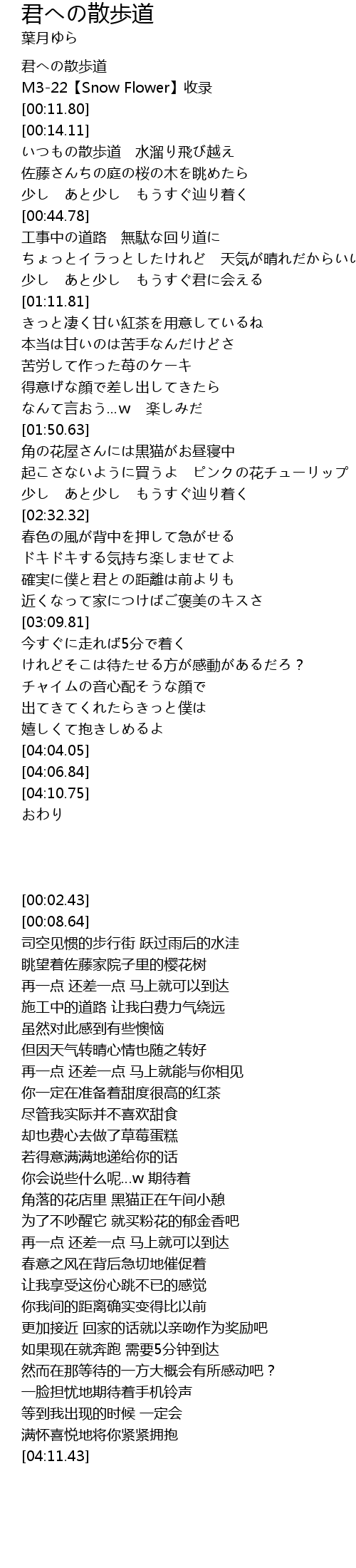 | [00:08.64] | M3-22【Snow Flower】收录 |
