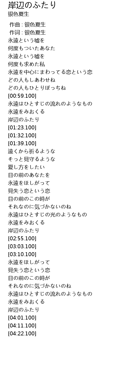 | [01:00.100] | 永遠はひとすじの流れのようなもの |