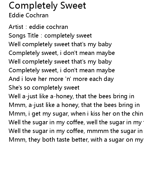| Completely sweet, i don' t mean maybe | |