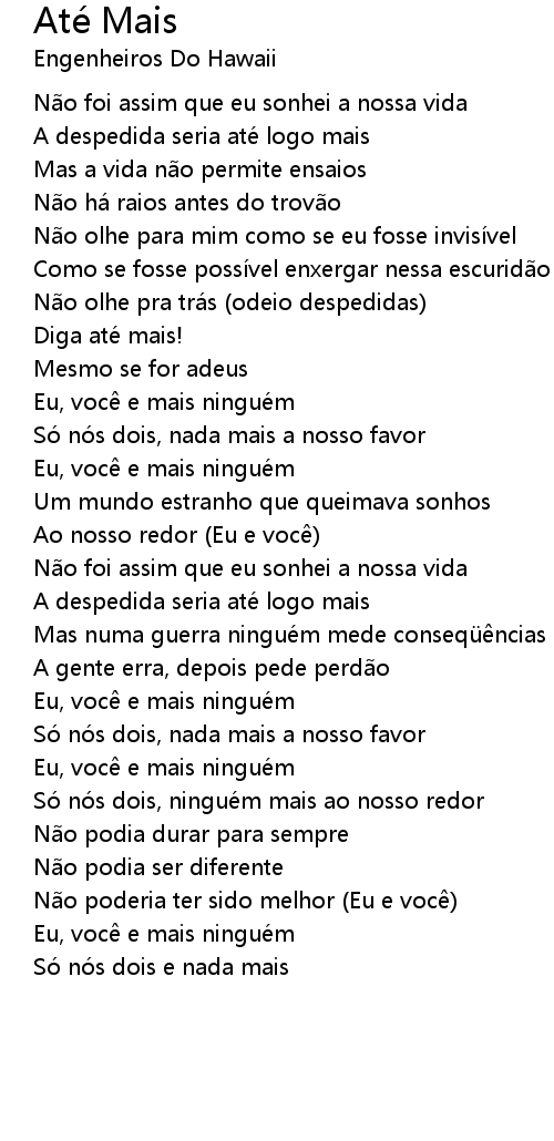 | N o olhe pra trá s odeio despedidas | |