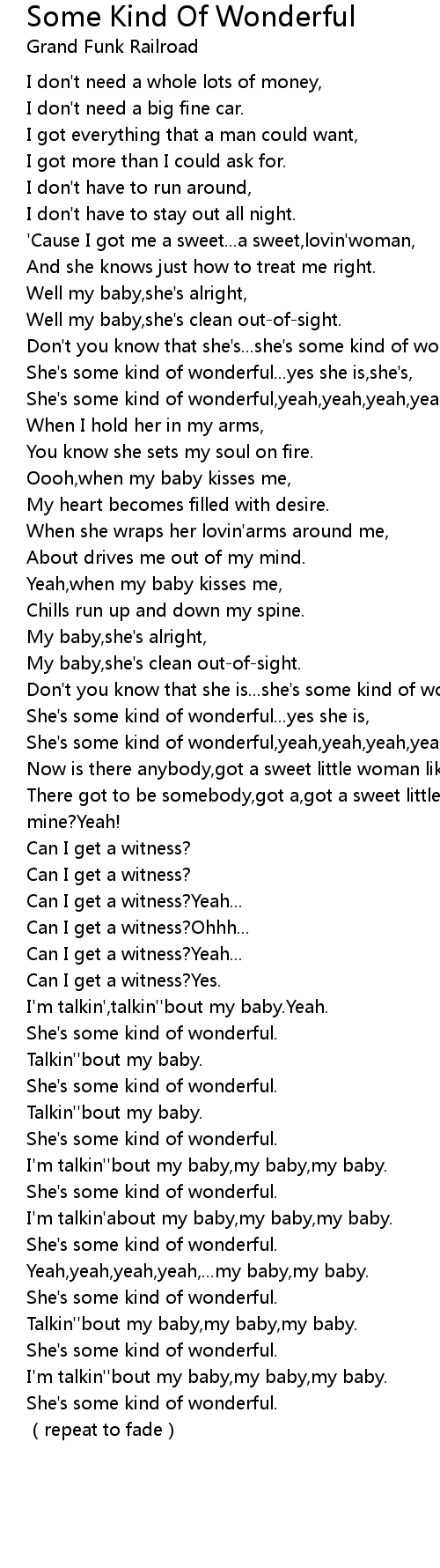 | [01:51.292] | She's some kind of wonderful,yeah,yeah,yeah,yeahhh... |