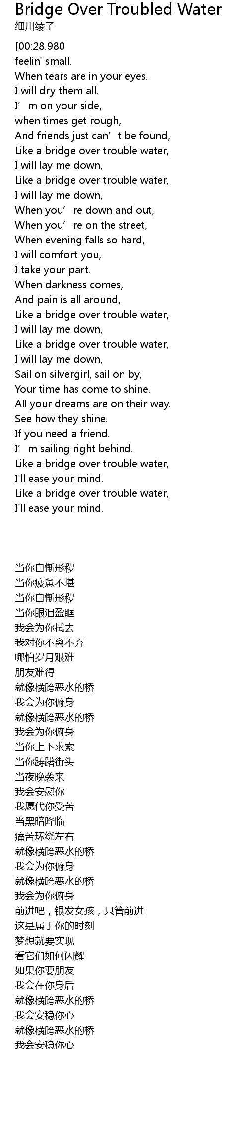 | [04:04.330] | Sail on silvergirl, sail on by, |