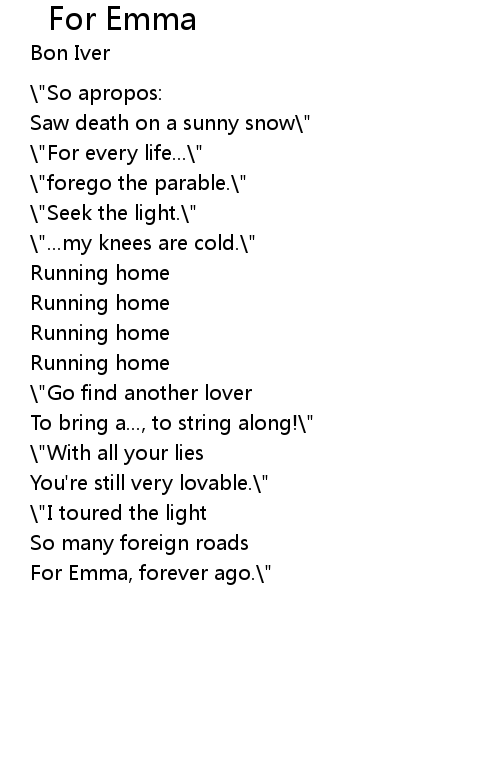 | Song | For Emma |