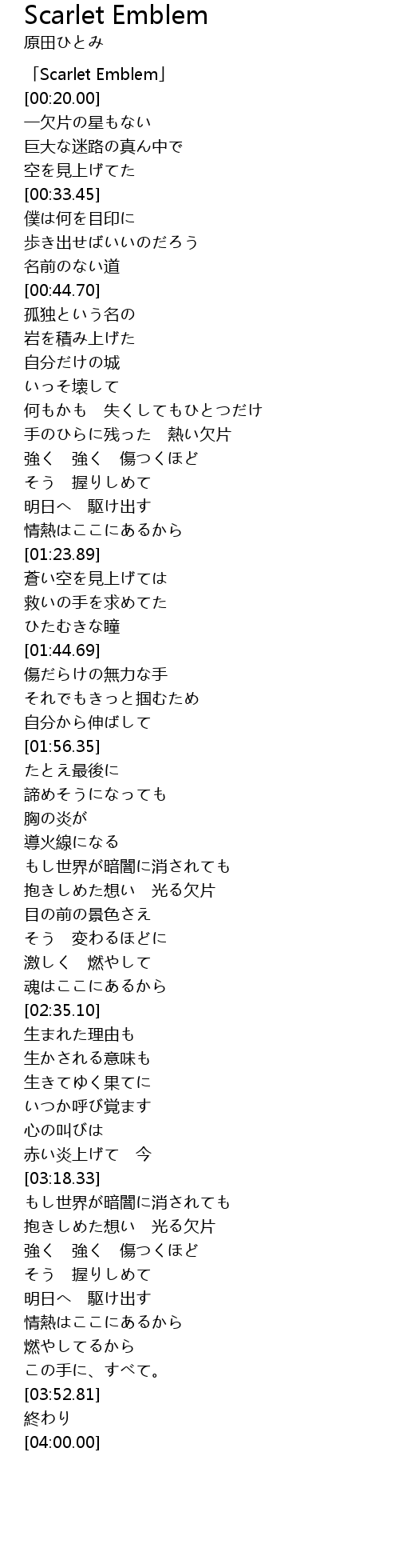| [00:00.00] | 「Scarlet Emblem」 |