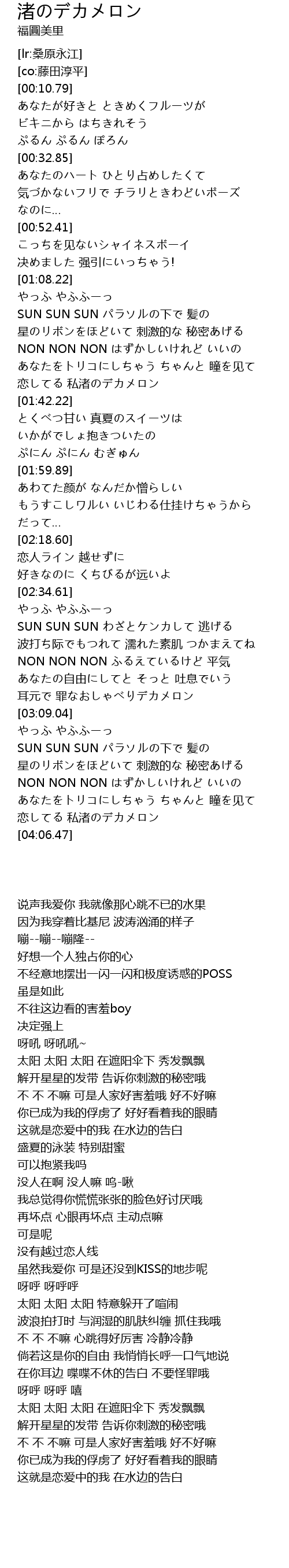 | [01:35.41] | 恋してる 私渚のデカメロン |
