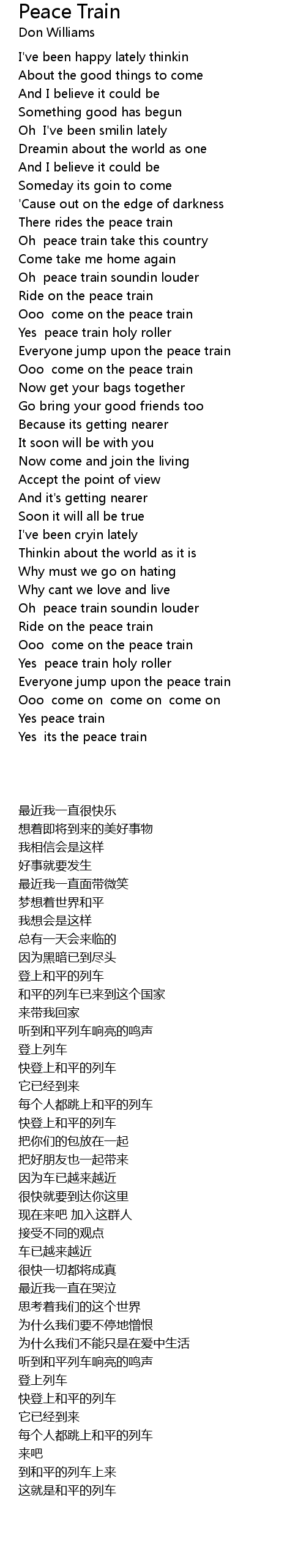 Yes peace train |