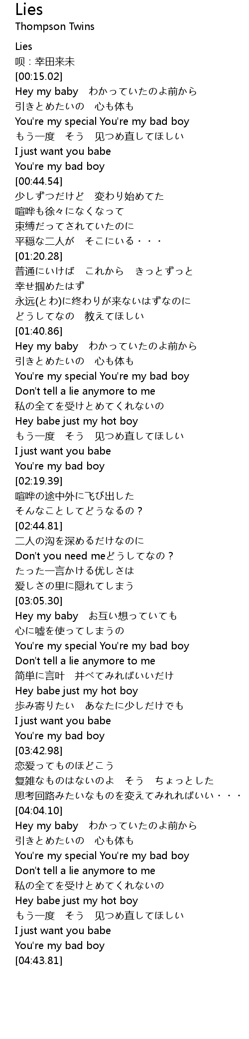 | [03:18.41] | Don't tell a lie anymore to me |