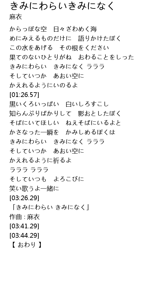 きみにわらい きみになく ラララ |