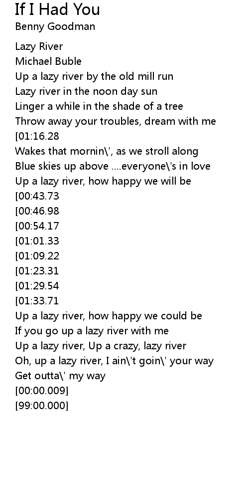 Oh, up a lazy river, I ain\'t goin\' your way |