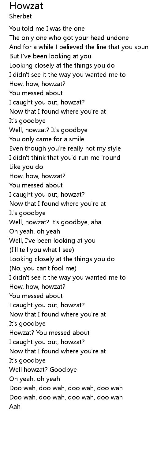 Well, howzat? It's goodbye, aha |
