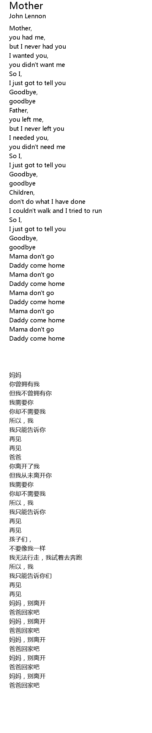 | [02:57.00] | Daddy come home |