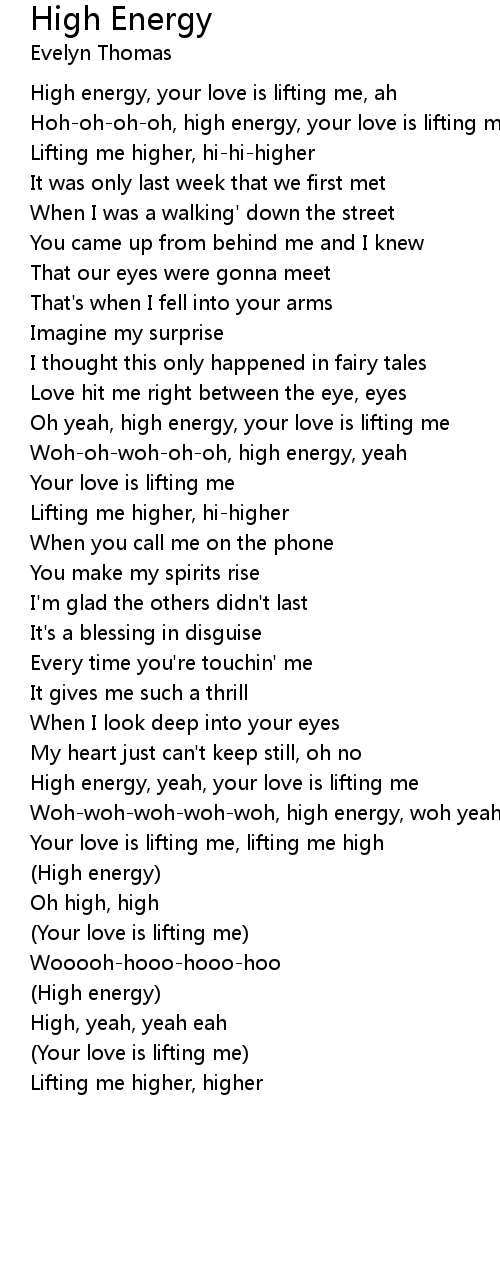 Hoh-oh-oh-oh, high energy, your love is lifting me |