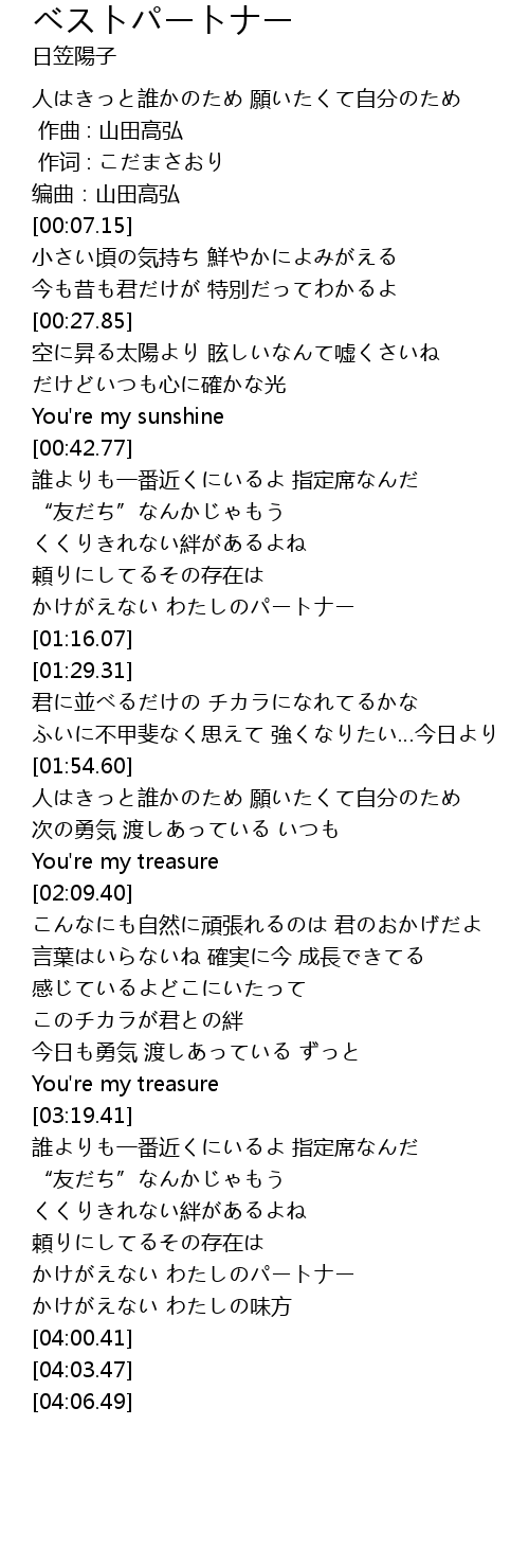 | [03:49.59] | かけがえない わたしのパートナー |