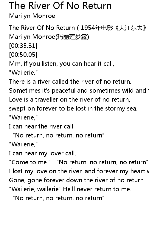 | [00:09.95] | The River Of No Return(1954年电影《大江东去》主题曲) |