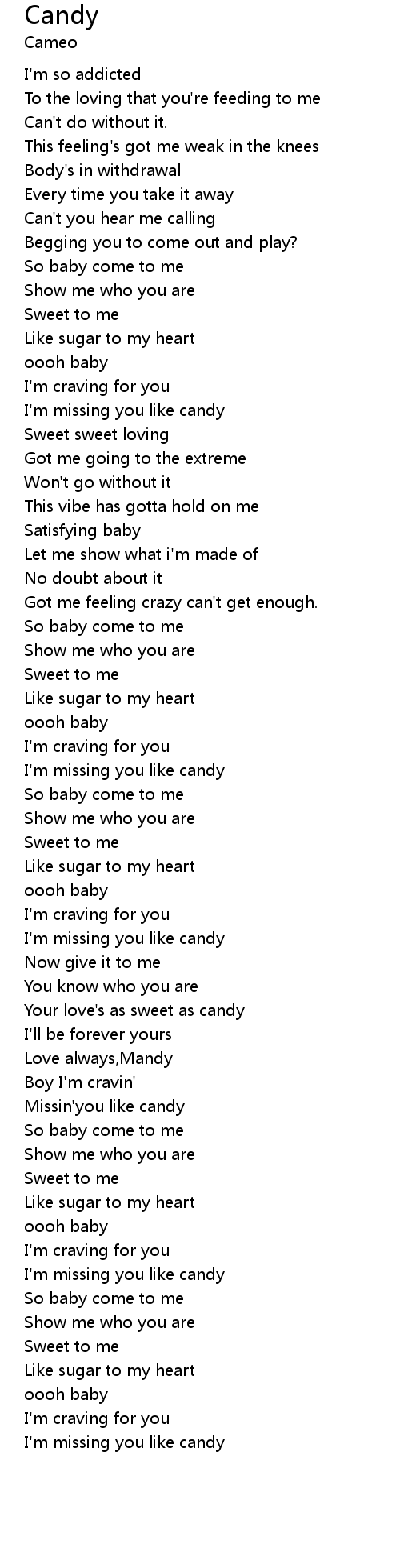 I'm missing you like candy |
