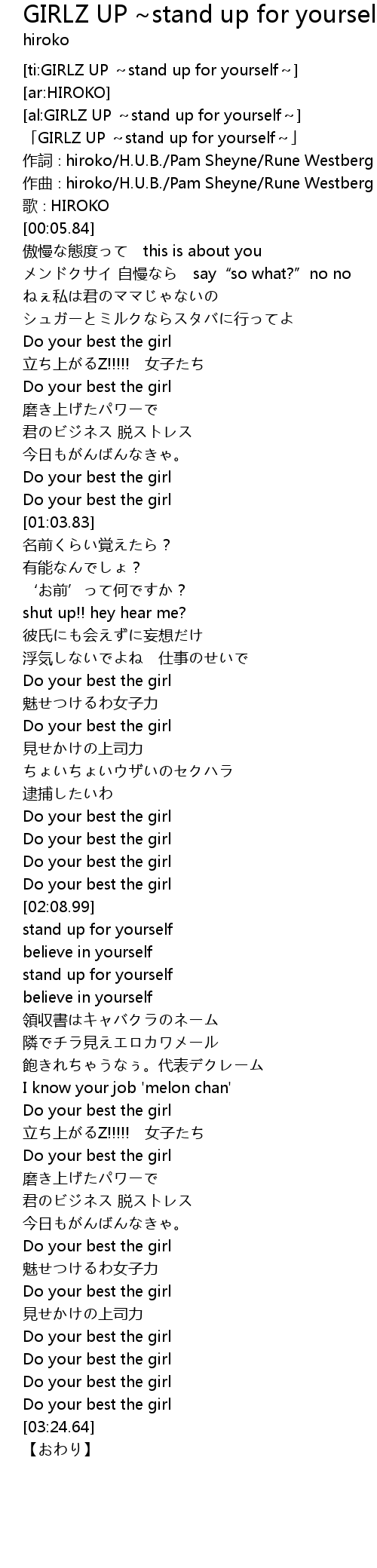 | [00:01.84] | GIRLZ UP stand up for yourself |