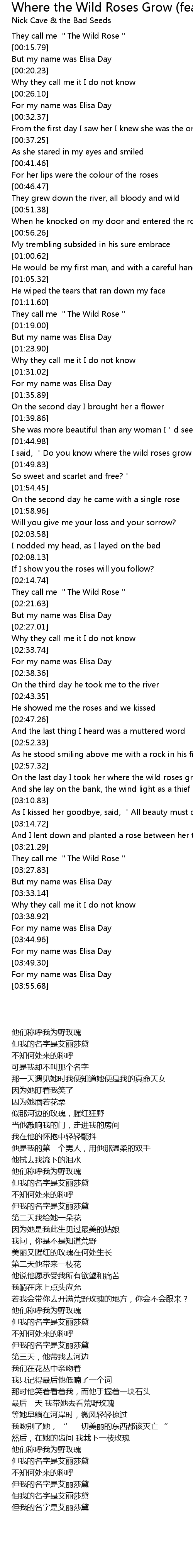 | [01:45.35] | I said, Do you know where the wild roses grow |